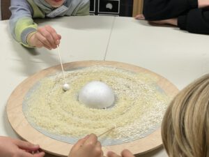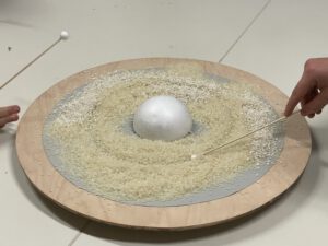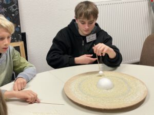 Wie diese, ca. 4800 km breite Lücke entsteht, konnte jeder YoungStarWalker und jede YoungStarWalkerin selber in einem Experiment nachstellen. Dabei wurde die Cassinische Teilung auf unserem Drehteller mit Reis und Polystyrolmonden erreicht. Sie ist die größte Lücke im Ringsystem. Verursacht wird sie hauptsächlich durch den Saturnmond Mimas.