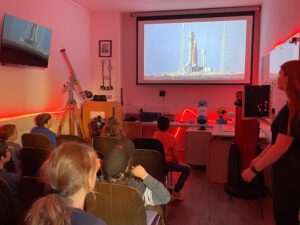 Am Dienstag traf sich wieder die LUNA Gruppe. Eigentlich freuten sich alle auf unseren größten Planeten – den Jupiter. Aber Finja hat entschieden – wir müssen über die Artemis II Mission berichten. Die Kinder und Jugendlichen sind erstmalig Zeuge eines so beeindruckenden historischen Events. Das muss man besprechen, wenn man Astronomie liebt. Das wird künftig in den Geschichtsbüchern stehen und unsere Kinder und Jugendlichen und wir Erwachsene erleben dies gerade. Unser YoungStarWalker Louis war der Knaller – er ist nämlich mit bei der Mission und hat den Mond umrundet. Wahnsinn! Es gab eine Aktion, bei der man sich bewerben konnte und mit seinem Namen auf einem Stick in einem Maskottchen mitflog. Louis selbst bekam ein Ticket und war mega stolz. Mit Livestreams waren wir an der Mission beteiligt und es gab immer nur zu staunen. Viele Eltern, die ihre Kinder abholten, sagten: „Oh Artemis Mission – da wäre ich heute auch gern dabei gewesen.“ Finja berichtete von den Lebensläufen der Astronautin und der Astronauten, von den vielen Rekorden, die mit der Mission gebrochen wurden und natürlich waren wir beim Start der Rakete dabei.  Die YoungStarWalkers haben echt gut durchgehalten – heute gab es kein Experiment, dafür viele Livebilder über die NASA. Wir wollten noch den Kurs auf unserem Hof nachstellen, aber dazu kamen wir nicht mehr, weil alle ganz viele interessante Fragen hatten. Was wäre passiert, wenn sie die Toilette nicht repariert bekommen hätten? Was ist wenn das Fenster kaputt geht? Was, wenn sie vom Kurs abkommen – und, und, und? Wir können jedem nur empfehlen sich über Youtube die beeindruckenden NASA Videos anzusehen. Und wir haben einen neuen YoungStarWalker begrüßt: Herzlich Willkommen Miron bei den LUNA’s. Beim nächsten Mal erlebst auch du ein Experiment.